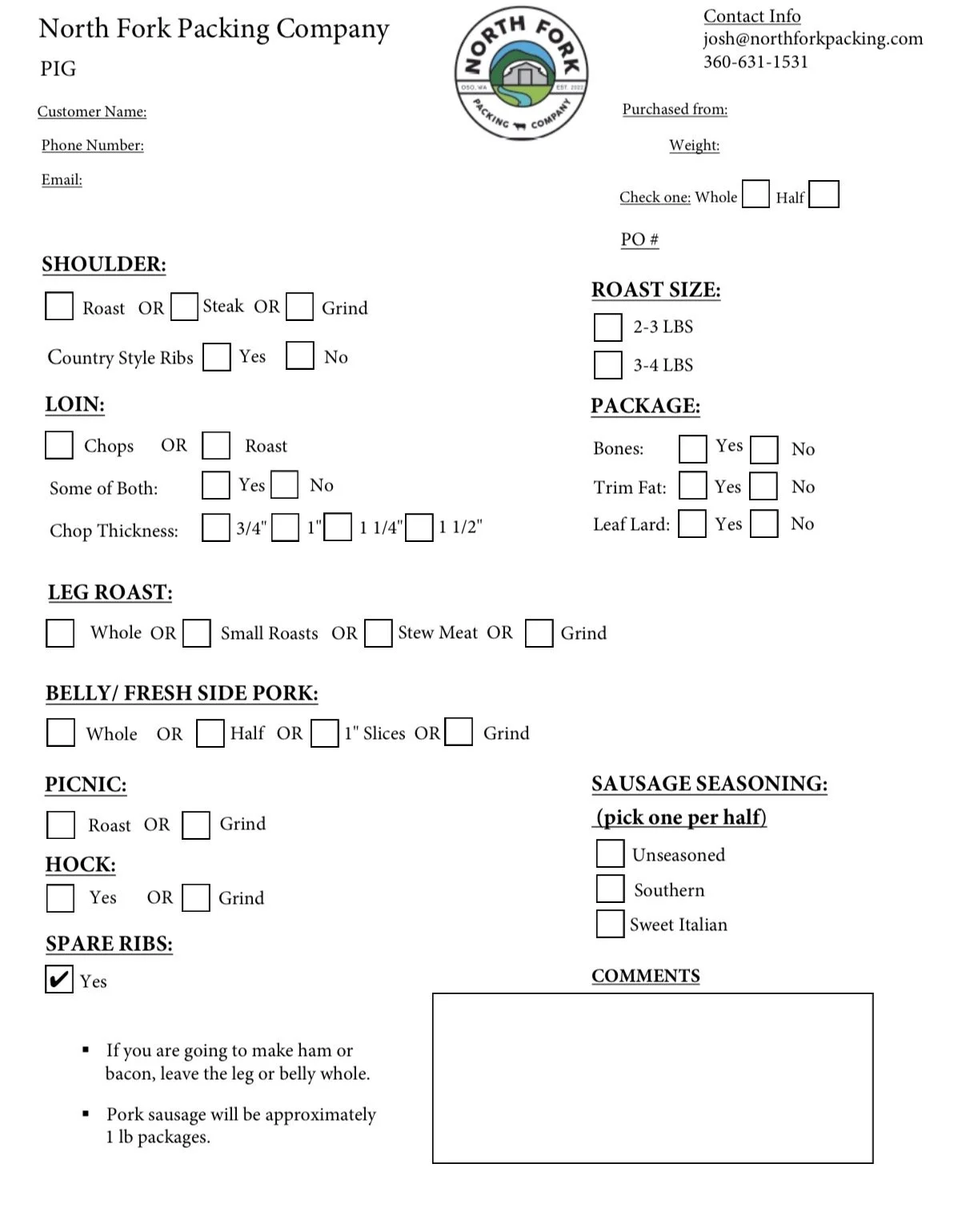 Each 1/2 pork includes a package of spare ribs.